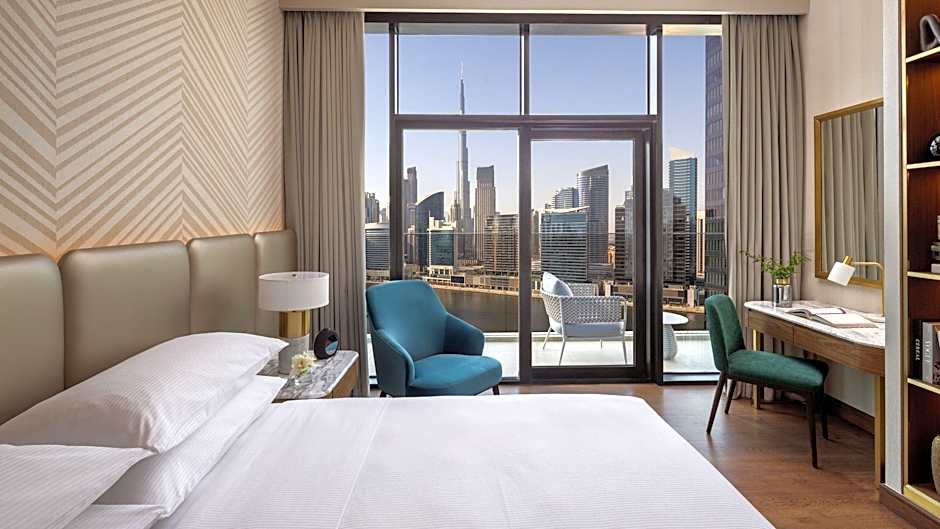 Located in Dubai's Business Bay, the stay features lake-view and landmark-view options with terraces and balconies overlooking gardens. Practical touches include a private entrance, an elevator, and soundproof rooms, while bathrooms showcase free toiletries, bathtubs, and bidets. Address remains Marasi Drive, and with the city-center distance of 7,6mi and price from $163, this 5-star option stands out for travelers seeking comfort and style.